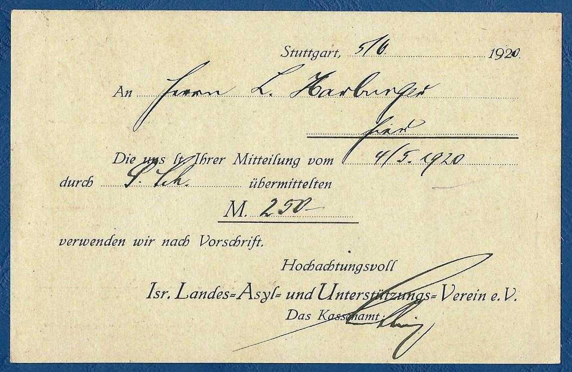 Die Postkarte vom Kassenamt des Israeltischen Landes-Asyl- und Unterstützungsvereins e.