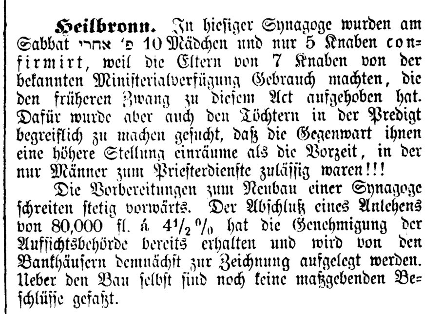 Nach der Verlegung des Lehrensteinsfelder Rabbinats 1867 war Heilbronn