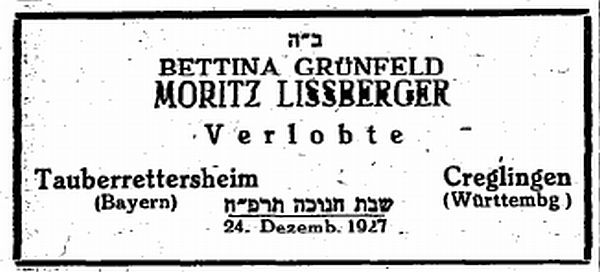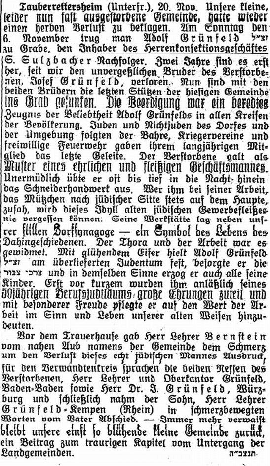 Tauberrettersheim als Sohn des Viehhändlers Seligmann Grünfeld und der Babette
