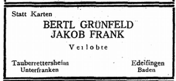 Anmerkung: Bertha Frank geb. Grünfeld (geb.