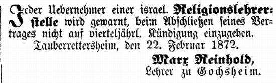 auswärtige Lehrer (z.B. Lehrer Bernstein aus Aub