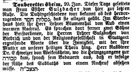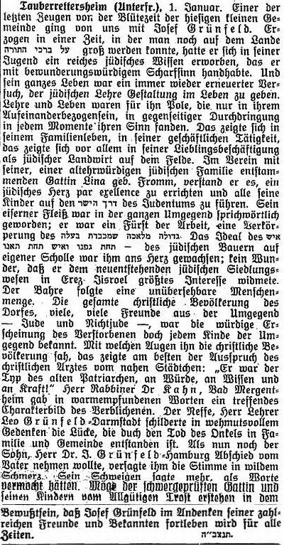 in der Zeitschrift "Der Israelit" vom 19. Februar 1925:
