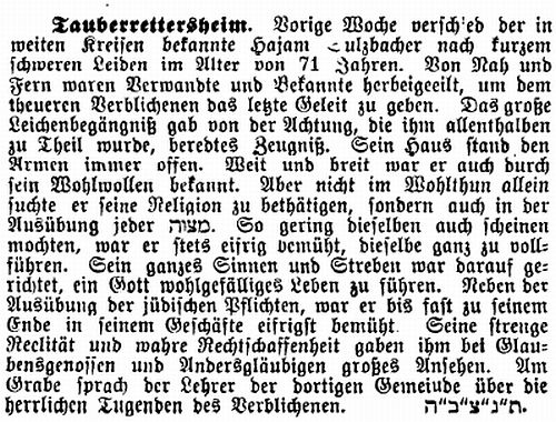 Würzburg gehörigen Tauberrettersheim (ursprünglich: Rettersheim) bestand eine jüdische Gemeinde bis