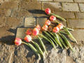 vor dem ehemaligen Haus des Ehepaares, das nicht mehr steht. Viele