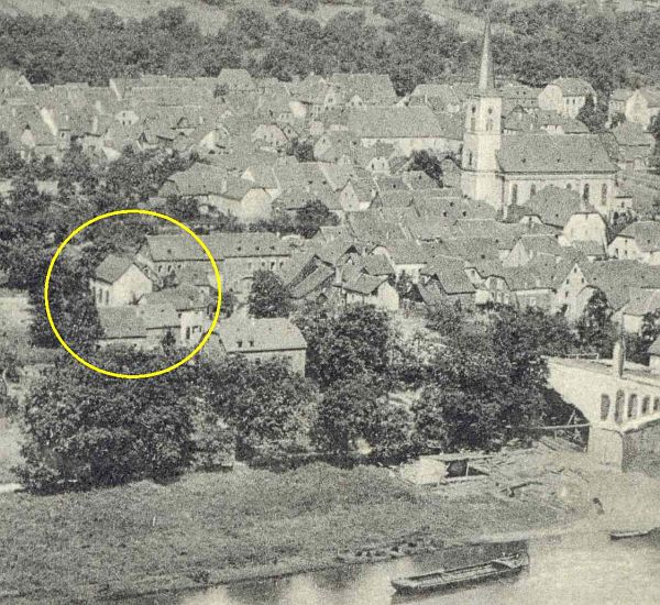 Trittenheim mit der Synagoge (Ansichtskarte um 1907)