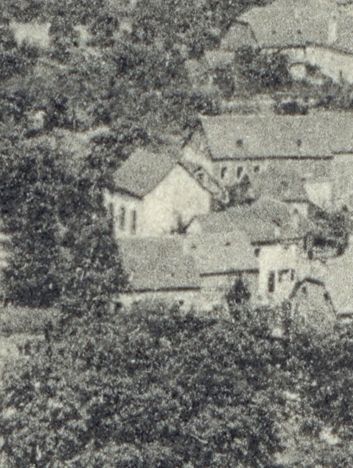 1930er-Jahren ist zu erkennen, dass die Synagoge an der Südseite drei große
