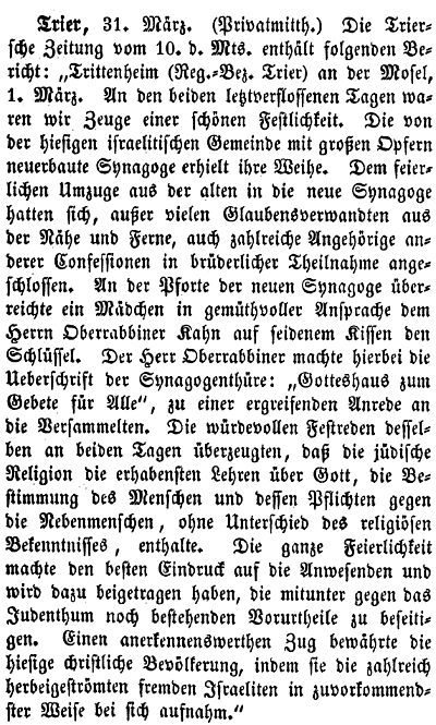 nahm Oberrabbiner Kahn aus Trier vor. Ein Bericht wurde in der Trier'schen