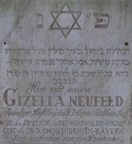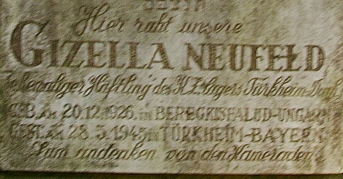 für "unsere Gizella Neufeld, ehemaliger Hälftling des K.Z.Lagers