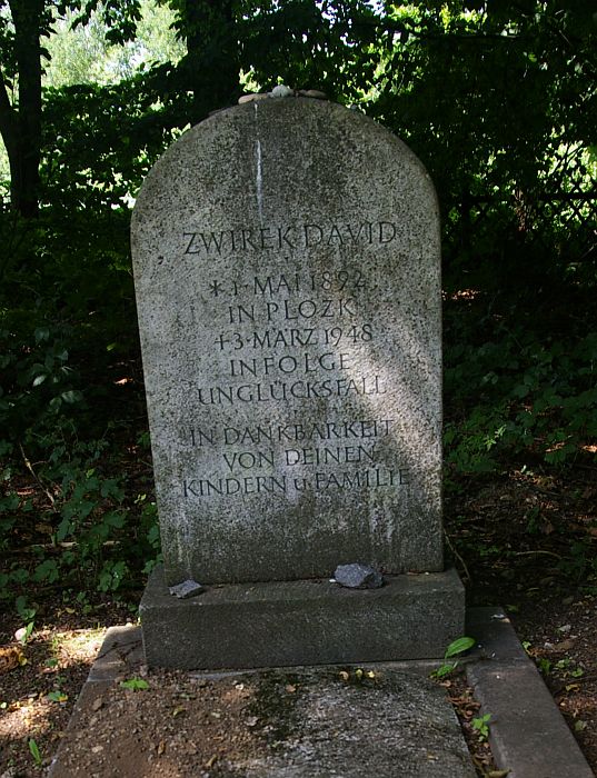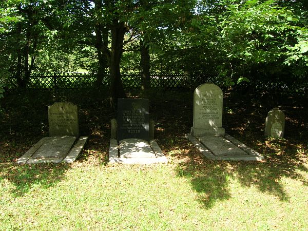 sich wenige Einzelgrabsteine und ein Gedenkstein befinden (Inschrift des
