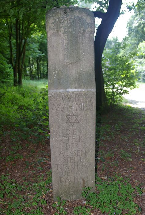 Gedenksteines: "1944/45. WIR MAHNEN DIE OPFER DER AUSSENSTELLE