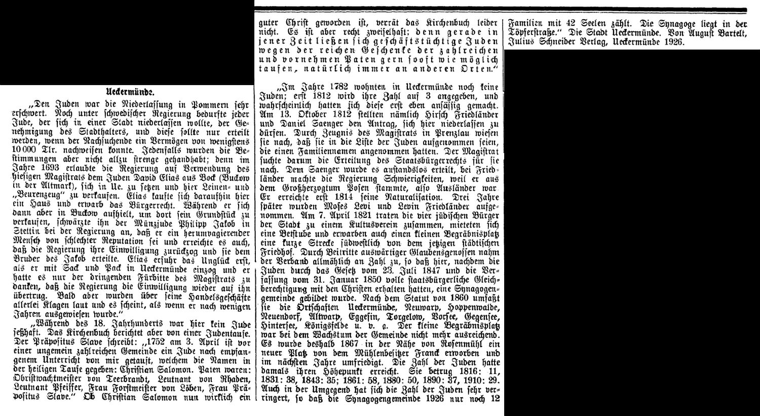 Beitrag zur jüdischen Geschichte in Ueckermünde (1930)