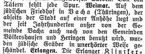 in der Zeitschrift "Der Israelit" vom 2. Juni 1932: "Weimar. Auf dem