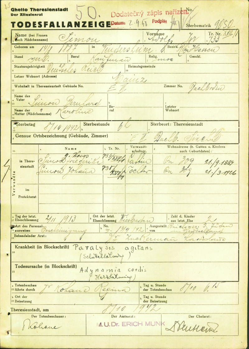 Adolf Simon im Ghetto Theresienstadt