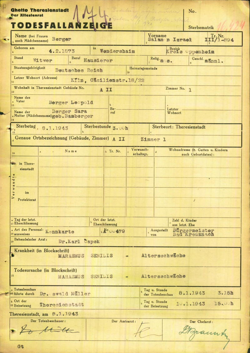 Salomon Berger im Ghetto Theresienstadt