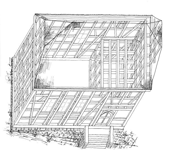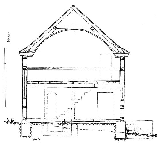abgebrochen. Das noch teilweise gut erhaltene Gebälk wurde zum Bau eines