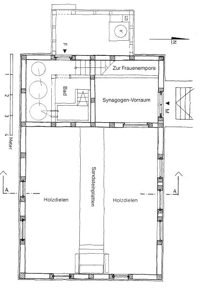hatte einen Grundriss von 7 mal 11 Metern. Es umfasste den Betsaal mit einer