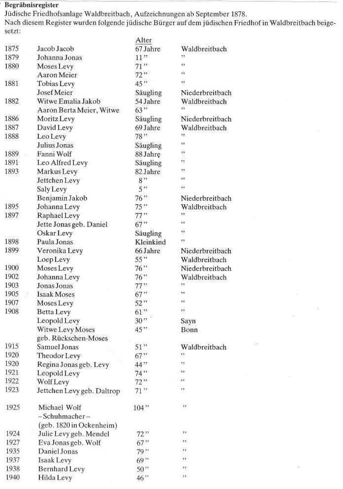 Waldbreitbach wurde um 1830 eröffnet und bis 1940 belegt (letzte Beisetzung von