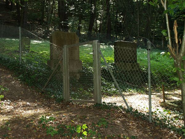 Der Friedhof liegt im Wald außerhalb des Ortes oberhalb der Straße nach