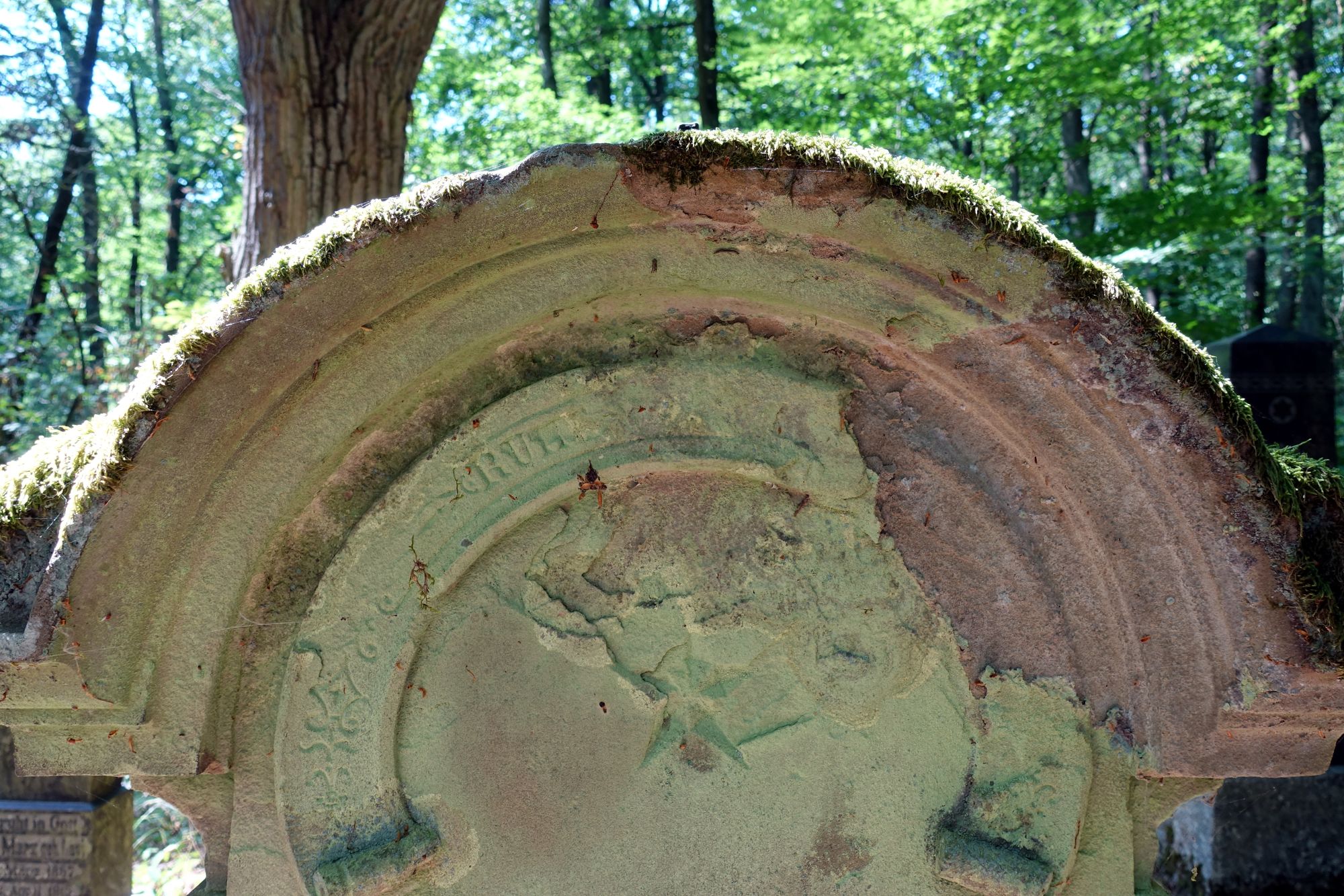 Verwitterungsspuren außerhalb der Inschriftenplatte |
