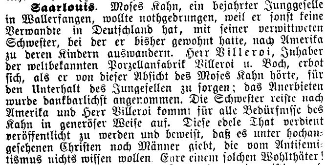 "Saarlouis. Moses Kahn, ein bejahrter Junggeselle in Wallerfangen,