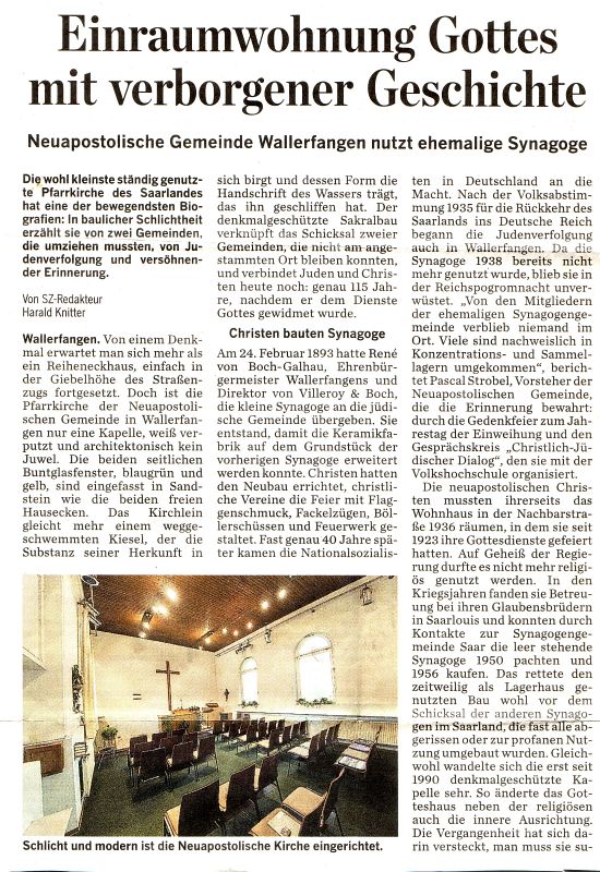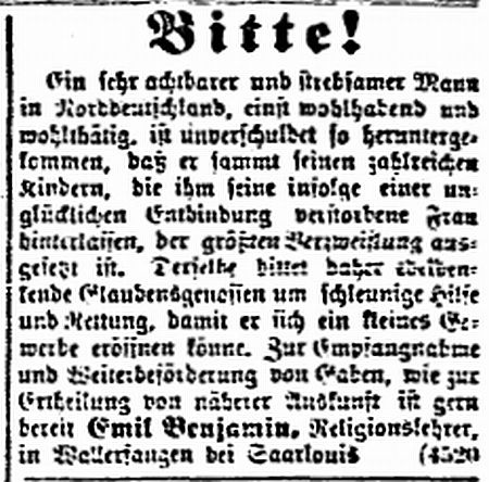 "Die israelitische Gemeinde Wallerfangen sucht zum sofortigen