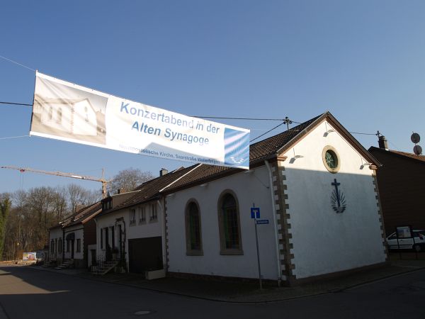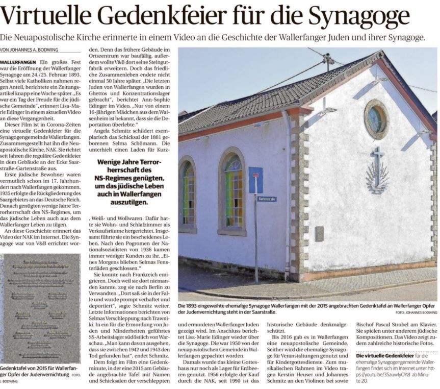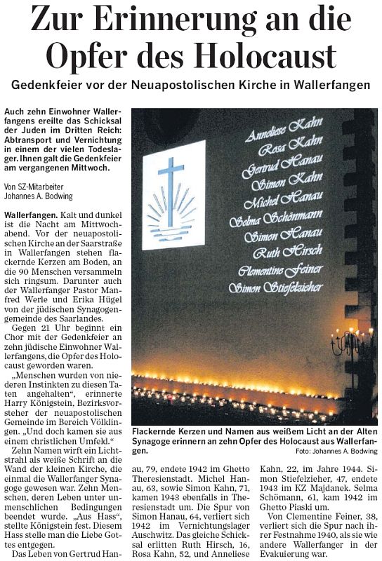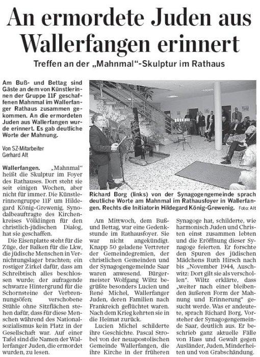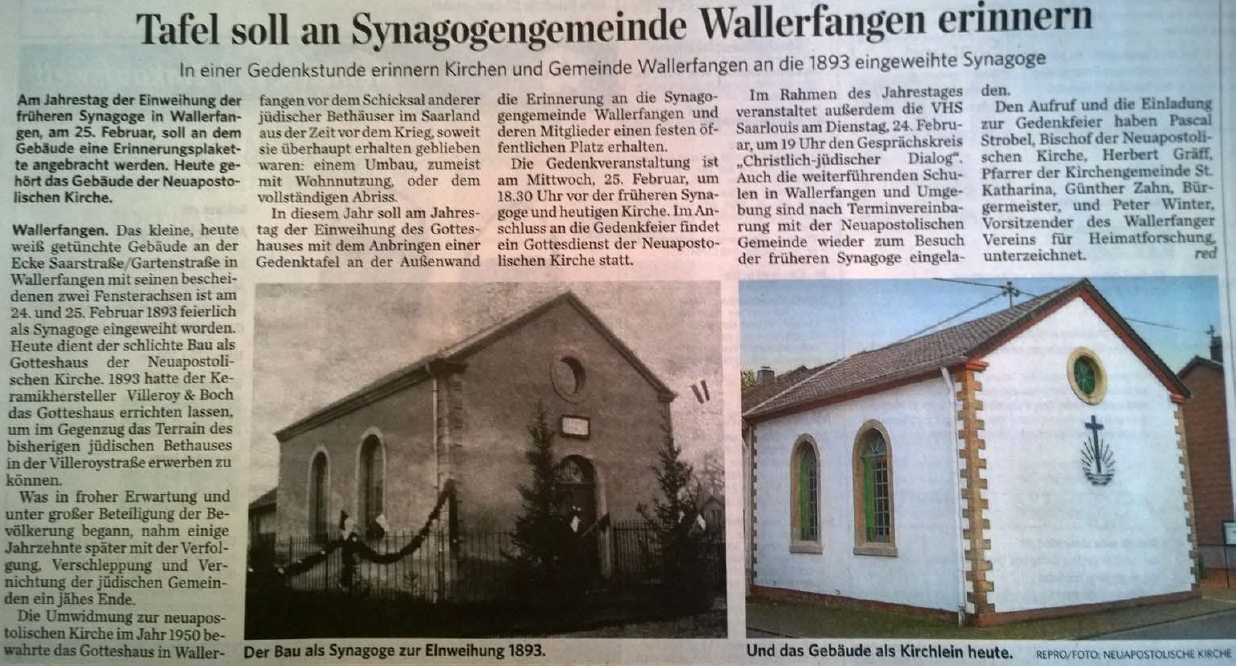 der Gedenktafel an der Wallerfanger Synagoge. Zur Aktion Stolpersteine gibt
