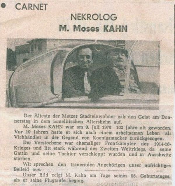 Leben. Moses Kahn überlebte die NS-Zeit und starb 1987 in Metz mit 101