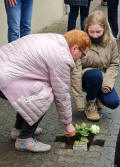 ein Stolperstein für Selma Schömann. Den fügten Maria Hewer und Schülerin