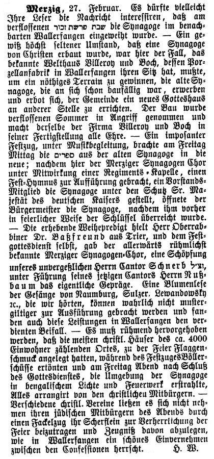 Wallerfangen, z.B. in einem Verzeichnis über die jüdischen Gemeindeglieder