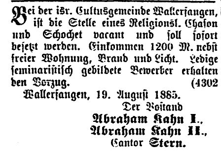 Israelit" vom 24. August 1885: "Bei der israelitischen
