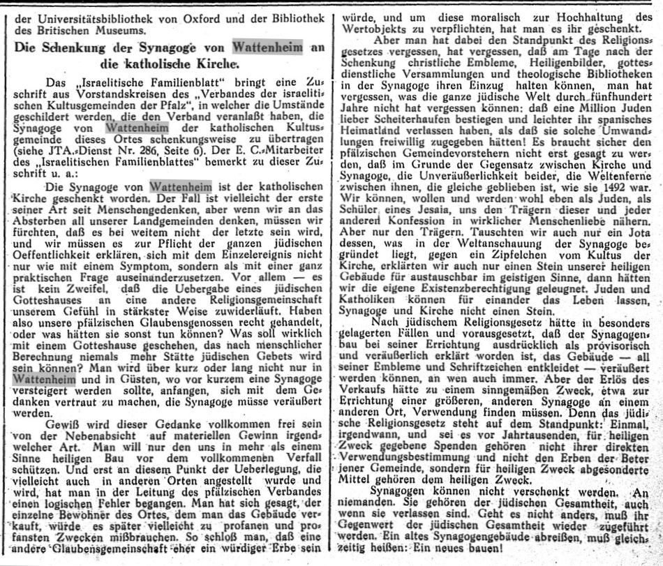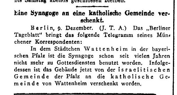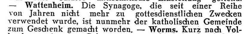 den letzten Wochen die Synagoge zu Wattenheim, nachdem die letzte
