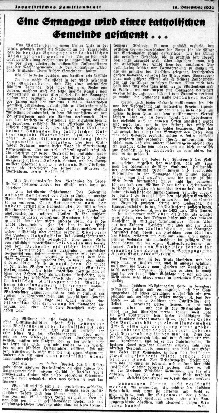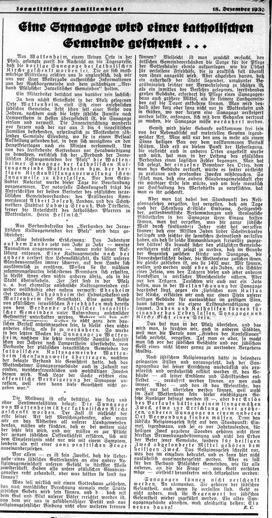 erschien auch in "Jüdisches Gemeindeblatt für das Gebiet der Rheinpfalz" vom