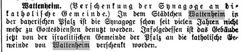 einer jüdischen Gemeinde mit Sitz in Wattenheim. Vorsteher der Gemeinde war in