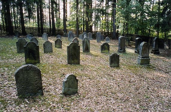mit einem Drahtzaun umgeben. Inzwischen wurde ein stabiler Lattenzaun angebracht. Es sind ca. 80 Grabsteine erhalten, viele ältere sind teilweise oder