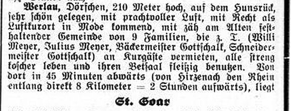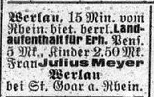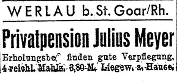 April 1937: "Werlau bei St. Goar/Rhein. Privatpension Julius Meyer.