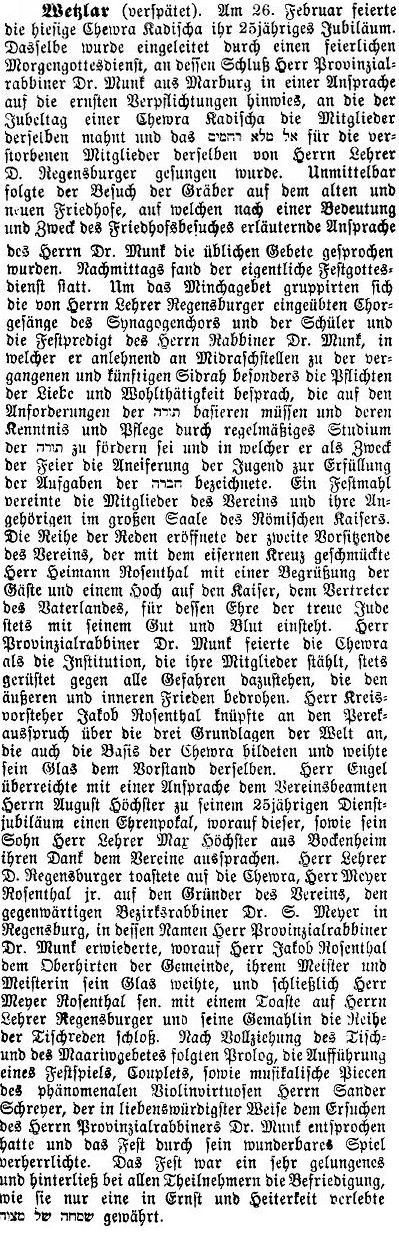 von Rechtsanwalt Dr. Hugo Rosenthal mit 24 Mitgliedern), der Israelitische