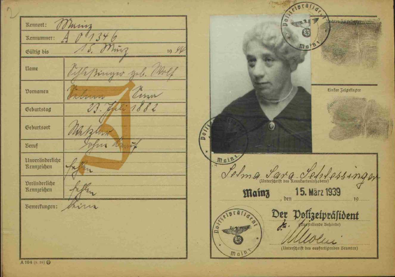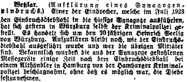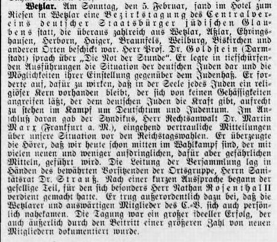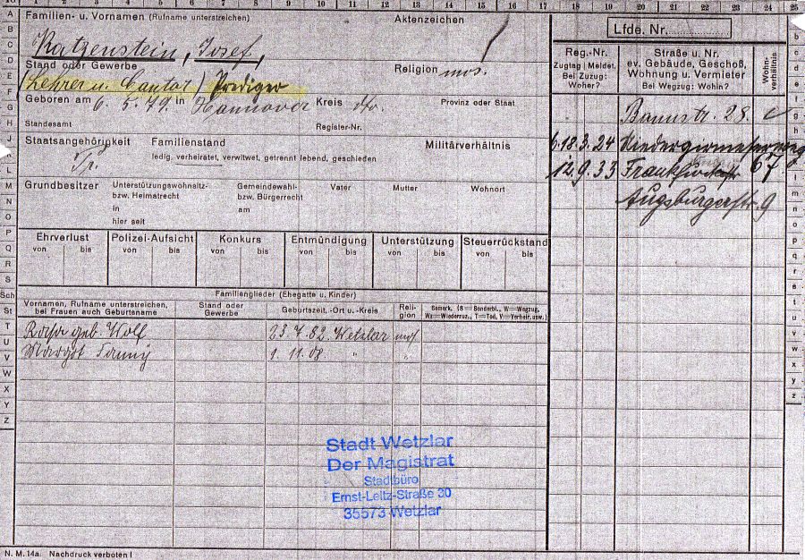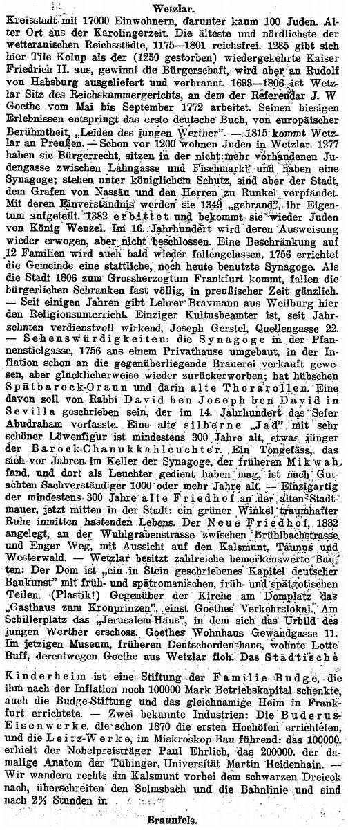 alle der Synagogengemeinde Wetzlar zugeordnet waren: 1. Wetzlar. 2.