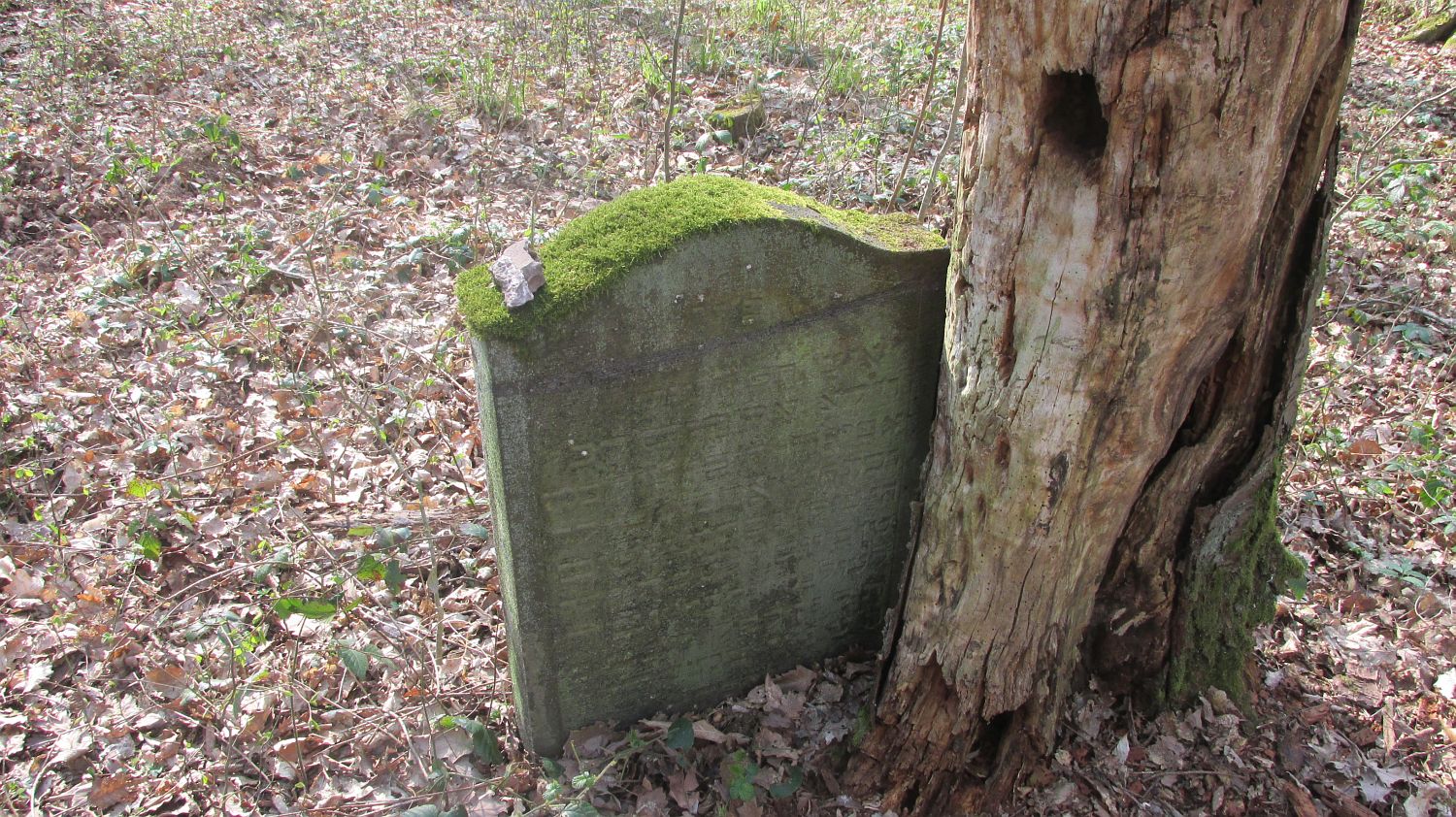 entdeckt. Einer der sechs Grabsteine ist vermutlich durch Baumwurzeln angehoben
