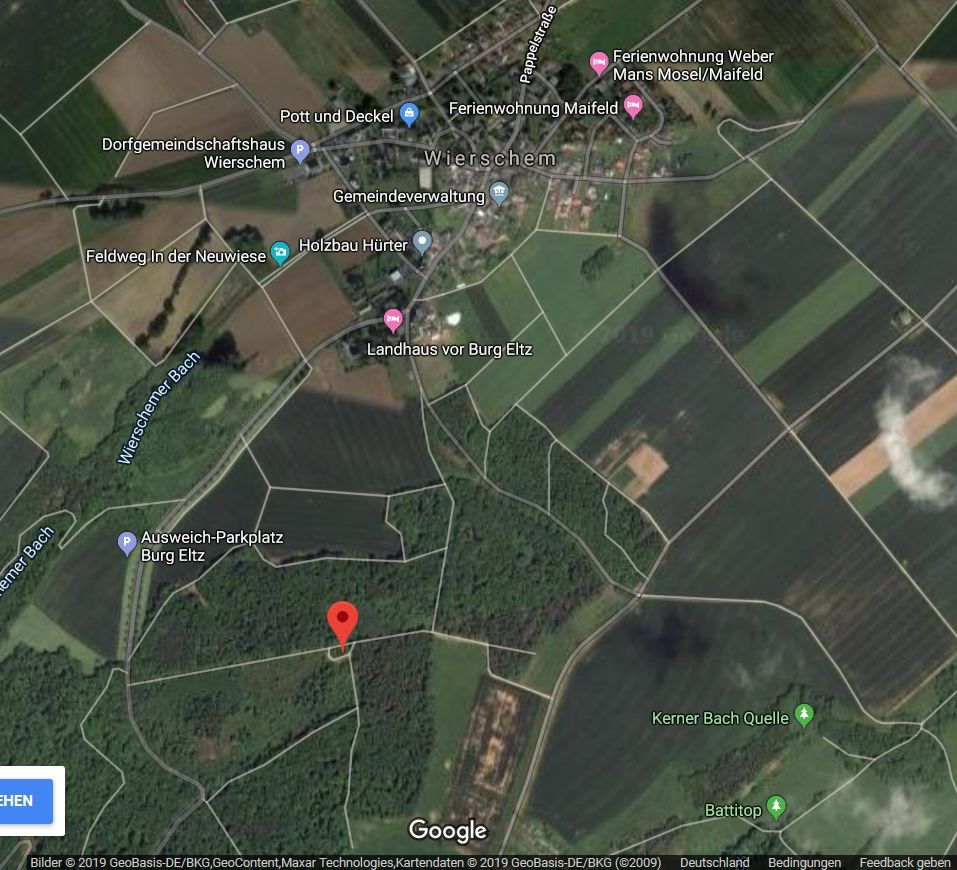 Südwestlich des Ortes im "Gräflich Eltzschen Wald".