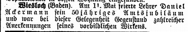 tätig, von 1869 bis zu seiner Zurruhesetzung 1913 Lehrer Daniel Ackermann;