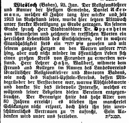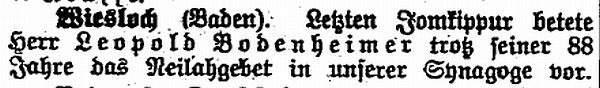 | Gedenkstunde in Wiesloch, in: Mitteilungsblatt des Oberrats der Israeliten