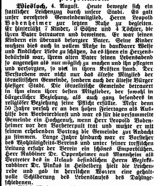 ein Teil von ihnen von Wiesloch verzogen oder emigriert. Durch den