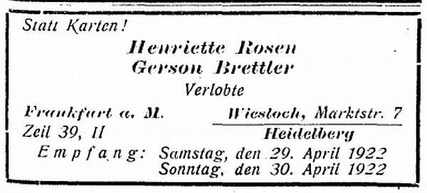 emigriert (20 in die USA), einige nach Frankfurt und Palästina/Israel. Am 22.
