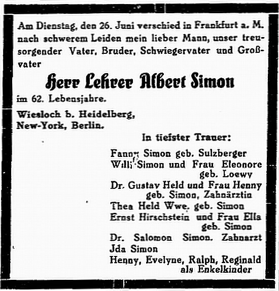 bis zu seinem Tod 1928 Lehrer Albert Simon und nach ihm Bernhard