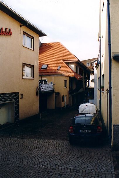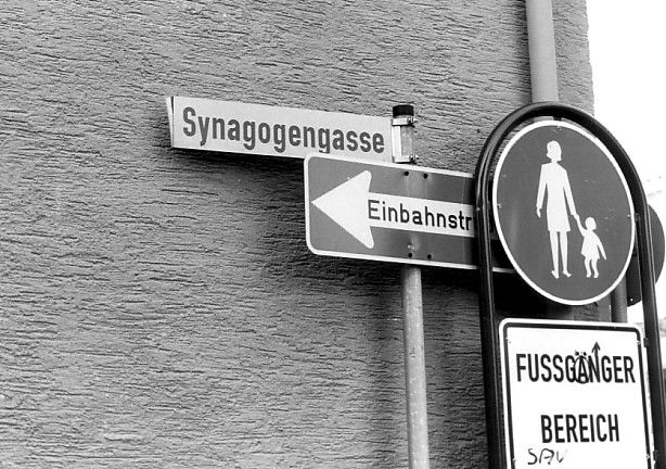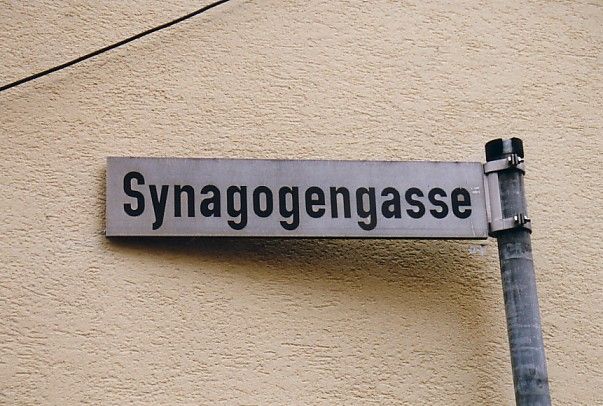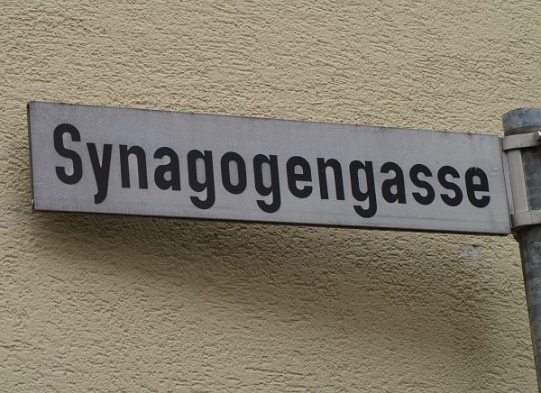 "Synagogengasse"; am Haus links die Gedenktafel |