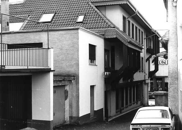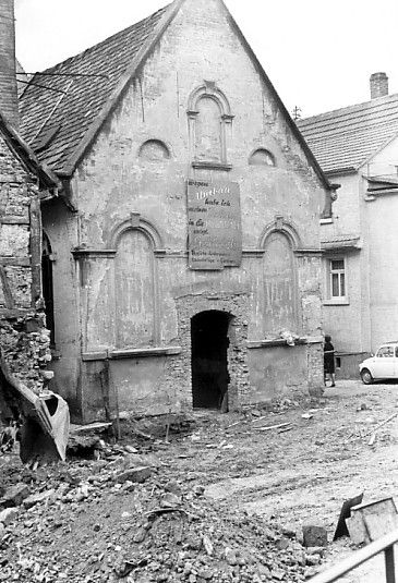 An ehemaligen, bis nach 1933 bestehenden Handels- und Gewerbebetrieben
