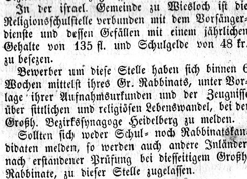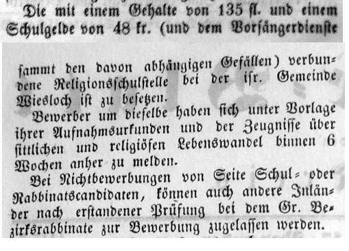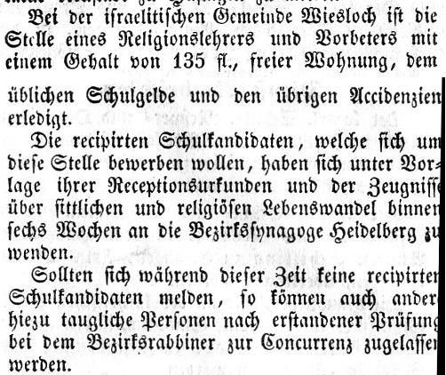 zugleich als Vorbeter und Schochet tätig war. In den 1850er-Jahren wird Lehrer