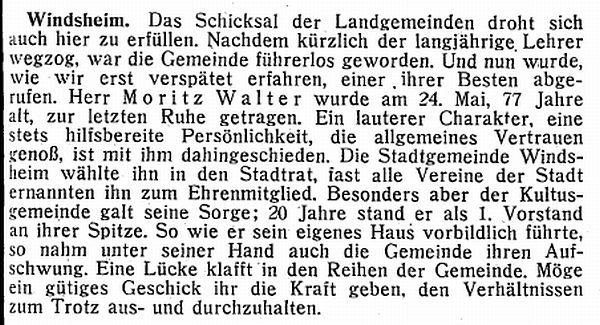 Stadt genannt. Einige nach Windsheim benannte Juden ließen sich später in