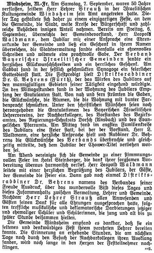 Distriktsrabbinat in Fürth. 1932 waren die Gemeindevorsteher Leopold