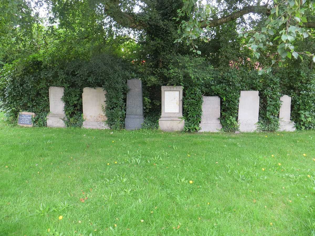 erhalten; erkennbar aufgestellt sind jedoch nur acht Grabsteine (siehe Fotos